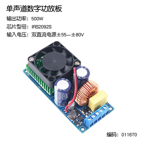 IRS2092S Digital Amplifier Board Mono 500W High-Power Class D Hi-Fi Amplifier Performance Surpasses LM3886